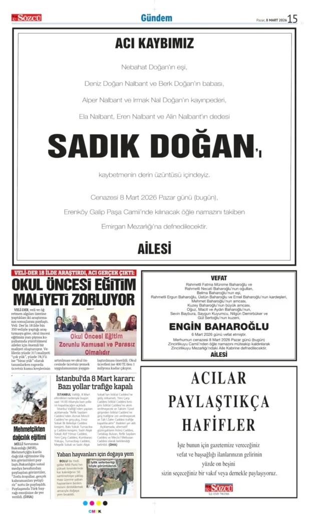 Sözcü Vefat İlanı ve Ölüm İlanı Servisi